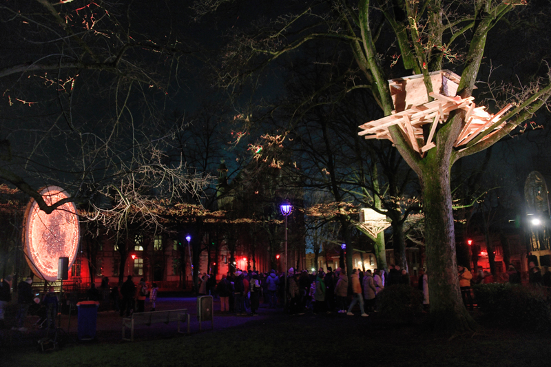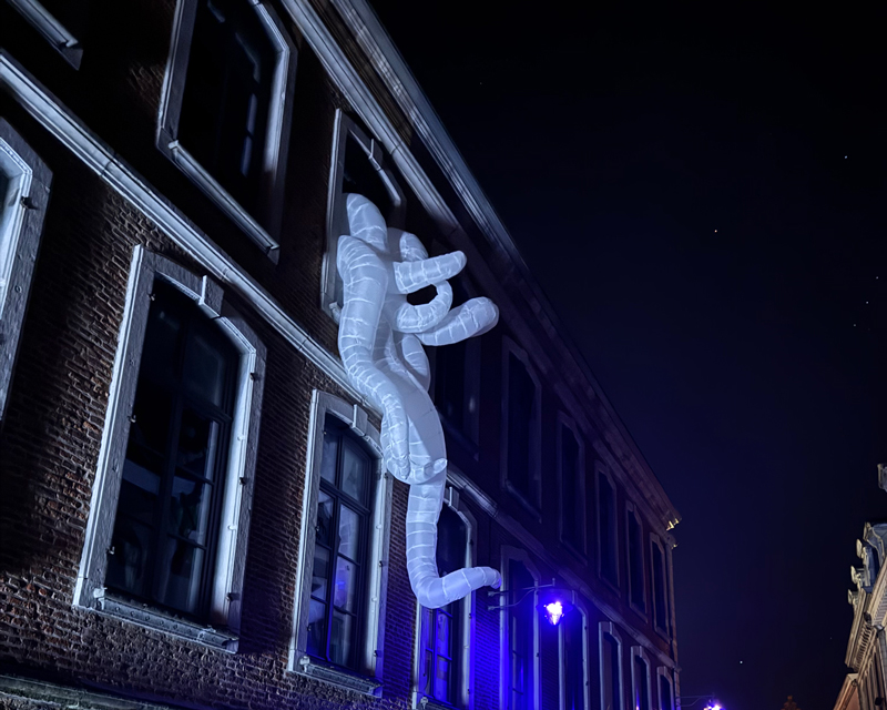 Artiste invité : Tadashi Kawamata, artiste japonais de renom, est reconnu pour ses installations monumentales réalisées à partir de matériaux recyclés. À travers ses œuvres, il invite les visiteurs à une expérience immersive et introspective, en les reconnectant à la nature. Son intervention pour Mons en Lumières souligne la fragilité de notre environnement et l’importance de sa préservation, tout en transformant les espaces de la ville en un dialogue poétique entre terre et ciel.