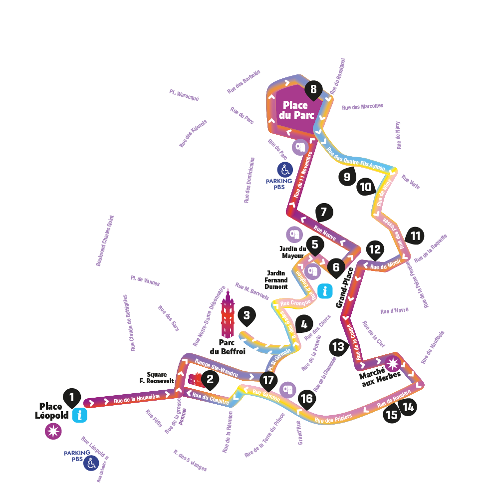C’est à la place Léopold, au pied de la gare de Mons, que débute le parcours. Transformée en véritable espace d’accueil, la place servira de sas immersif avec pour objectif de vous plonger immédiatement dans l’atmosphère du festival.